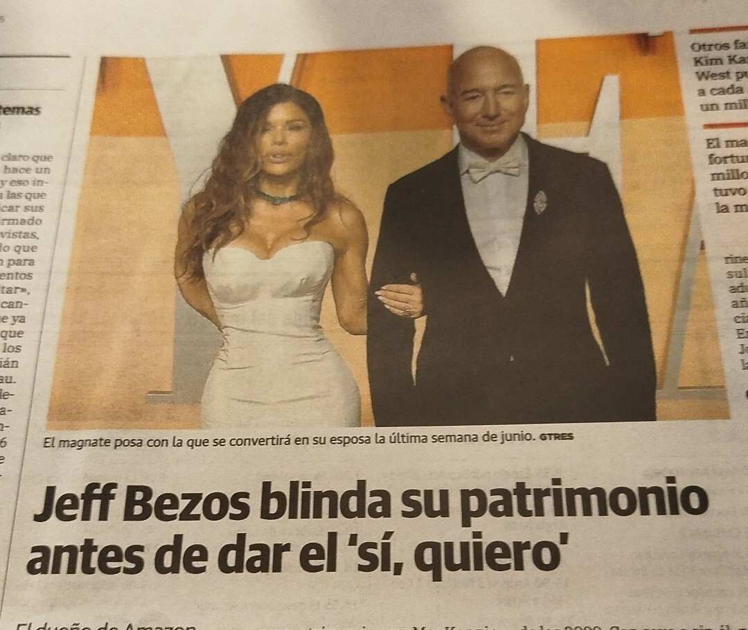En dos palabras “Pata Negra” se le ve feliz a Bezos no como Enmanuelle Macron, ni una foto con cara de enfadado ni la cara marcada.
