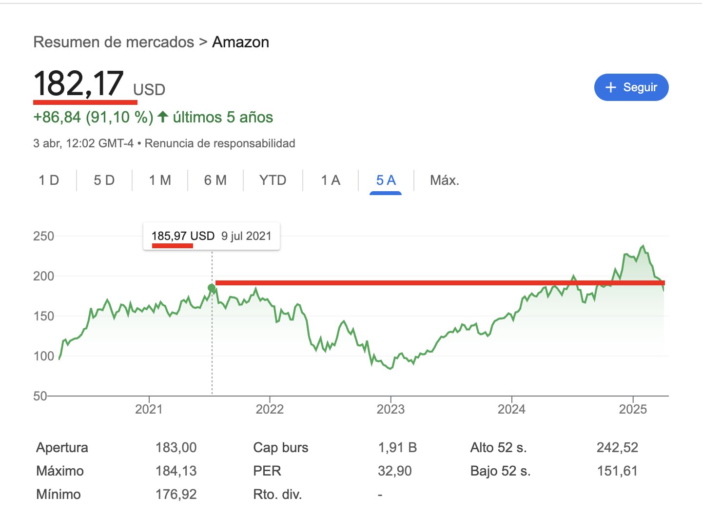 Amazon -7,50% “no sé Rick ese precio no me parece justo” al cierre espero mejore al igual que Apple, Meta…