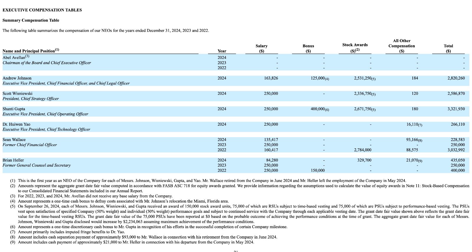 Avellan puso sus 500 millones de dólares en ASTS, no ha vendido ninguna acción y no cobra salario. Es un CEO muy alineado con los intereses de los accionistas.
