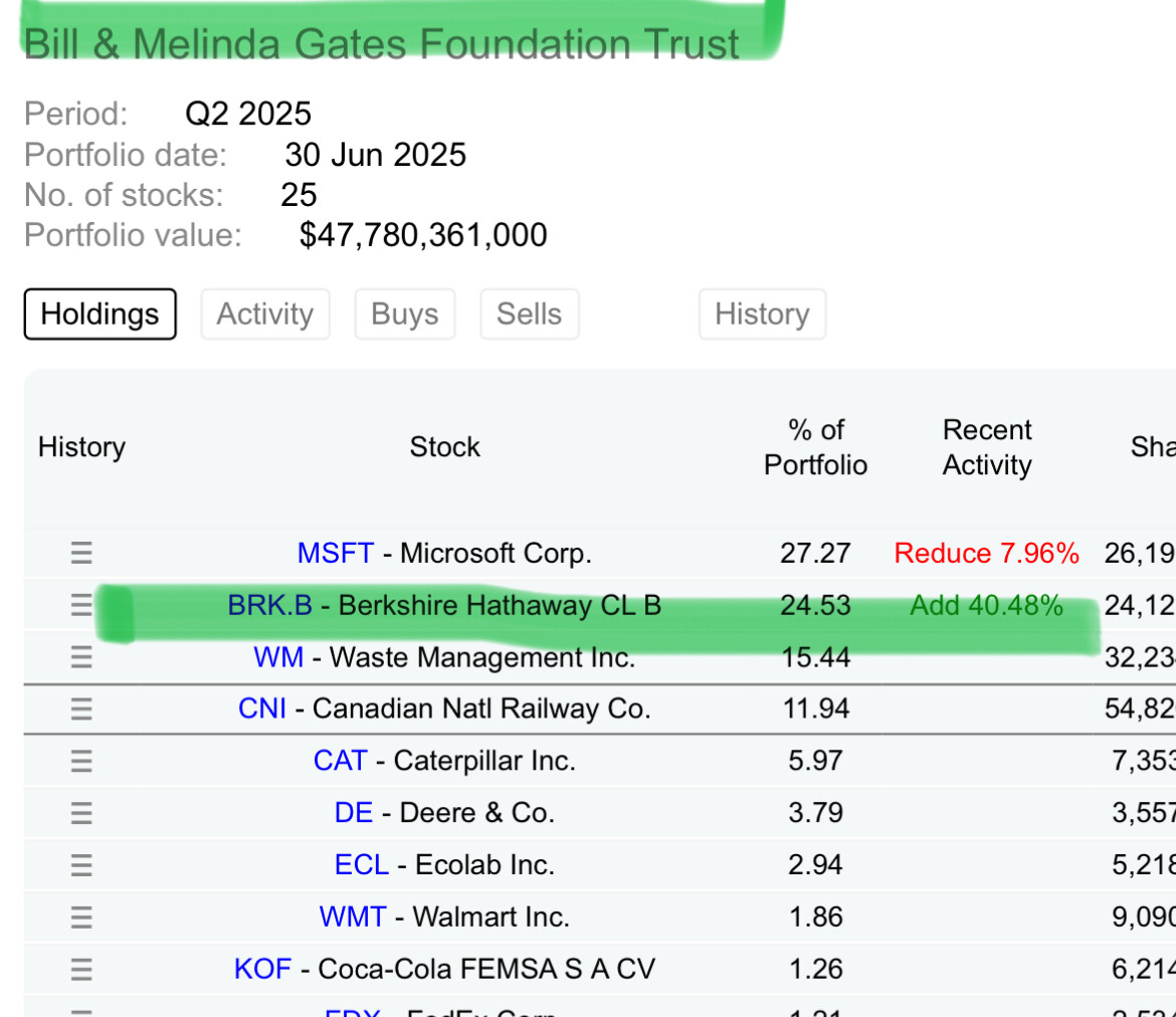 Sigue a buen precio aunque estuvo a 400€, Bill Gates amplió a dolor el trimestre pasado y seguirá ampliando, algo sabe Tito Gates ![]()