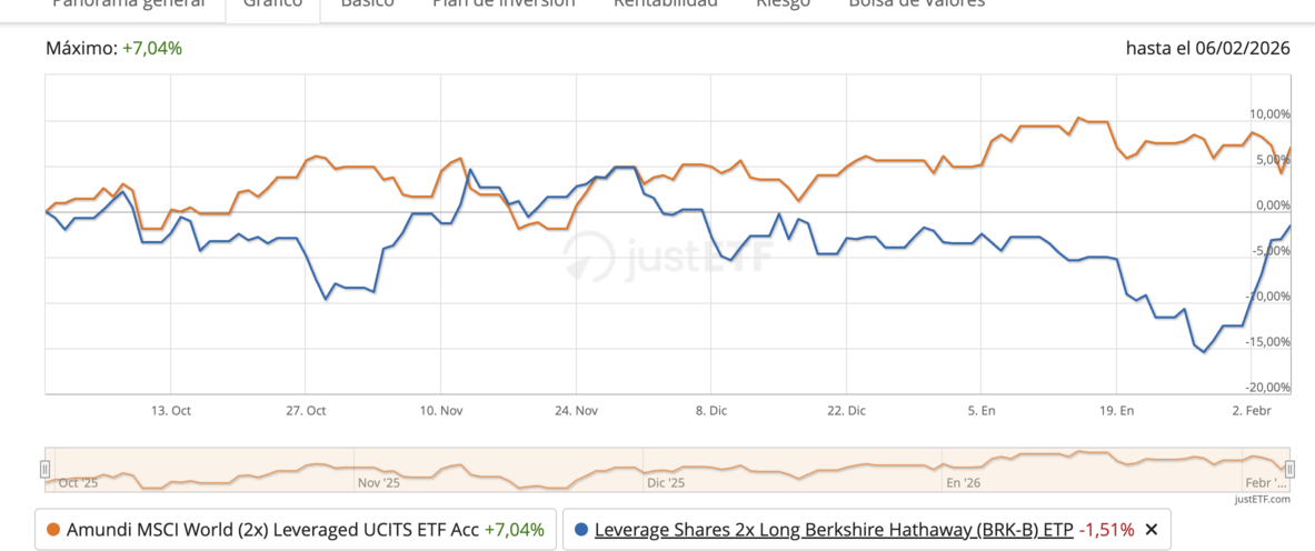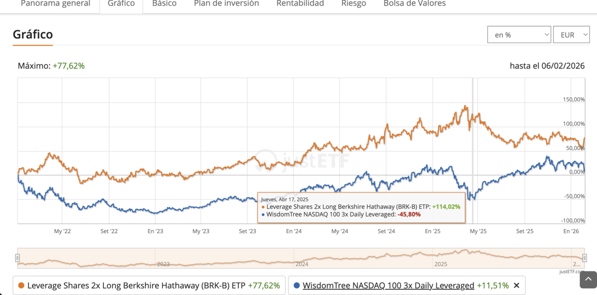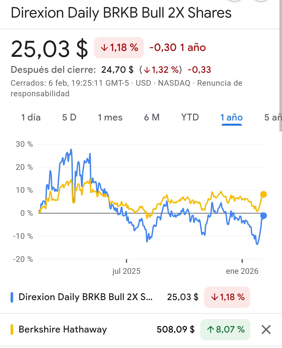 A diferencia de muchos ETFs de sectores o índices apalancados, este sigue solo el precio de la acción de Berkshire, no una cesta de empresas.
