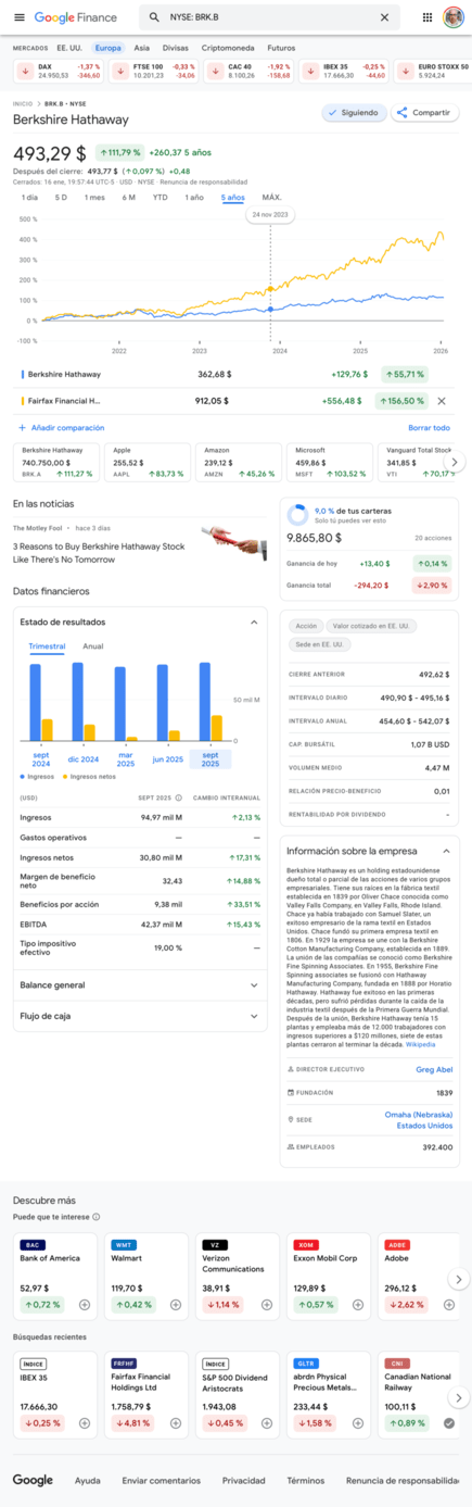 No jubilado en Fairfax Financial (sigue al mando).