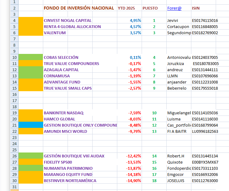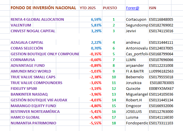 La próxima foto en Junio 2025 justo cuando llevemos ya media competición y se merecerá un análisis o mejor dicho comentario más exhaustivo, incluso sacando la rentabilidad a 3 años que lleve cada fondo para hacernos cierta composición de lugar de medio plazo.