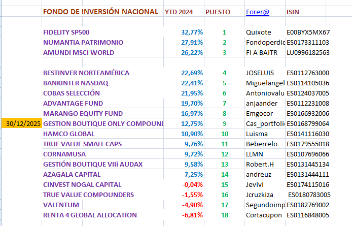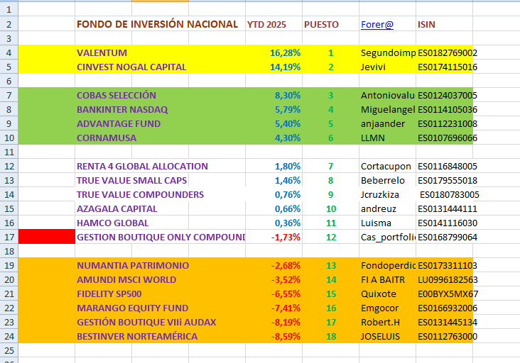 . Los de la zona media de 2024 se mantienen ahí, básicamente, no sobresalen pero pelean y dan rentabilidades decentes a sus partícipes.