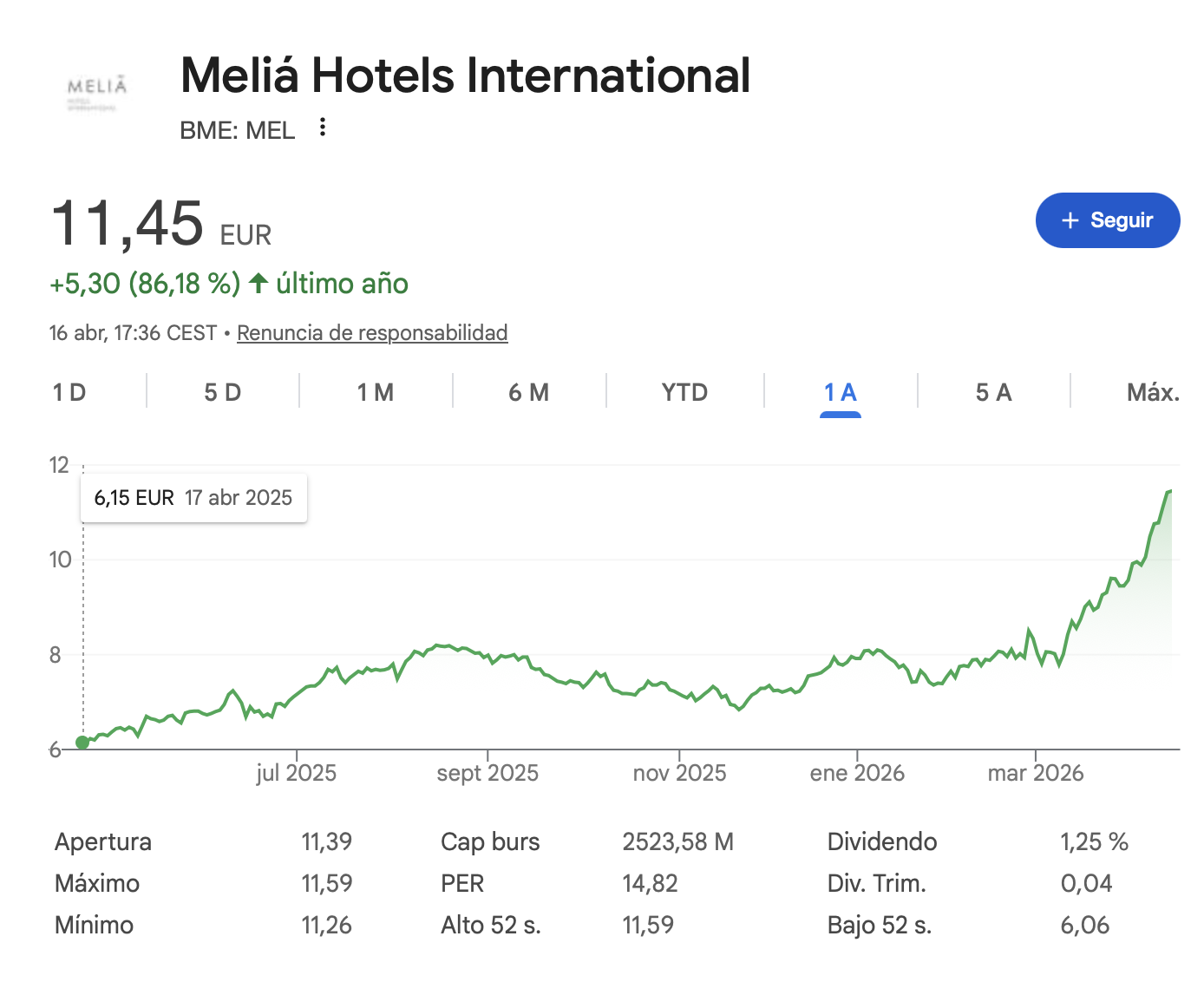 No es casualidad: Meliá tiene un patrimonio hotelero de primer nivel valorado en 5.285M€ a finales de 2024, mientras que la compañías capitaliza 1.800M€ y una deuda asociada a los activos inmobiliarios de 760M€.