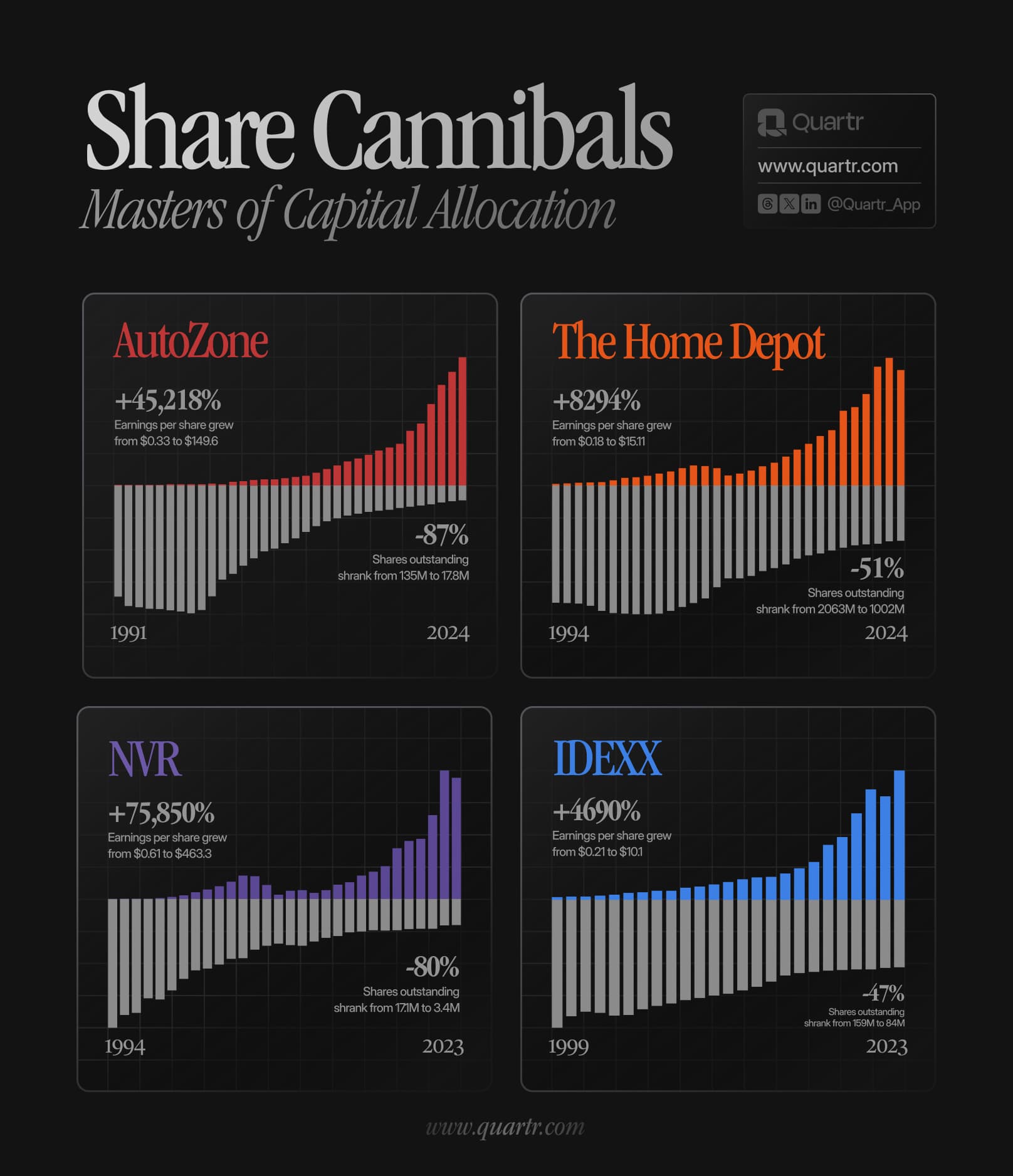 Mohnish Pabrai publicó un artículo sobre los “uber cannibals” y algunos años ha publicado unos cuantos, los de 2024 son: