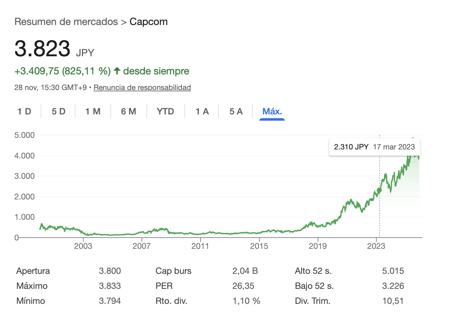 1 bagger desde octubre de 2022. Se podía haber comprado con un 7% de dividendos.