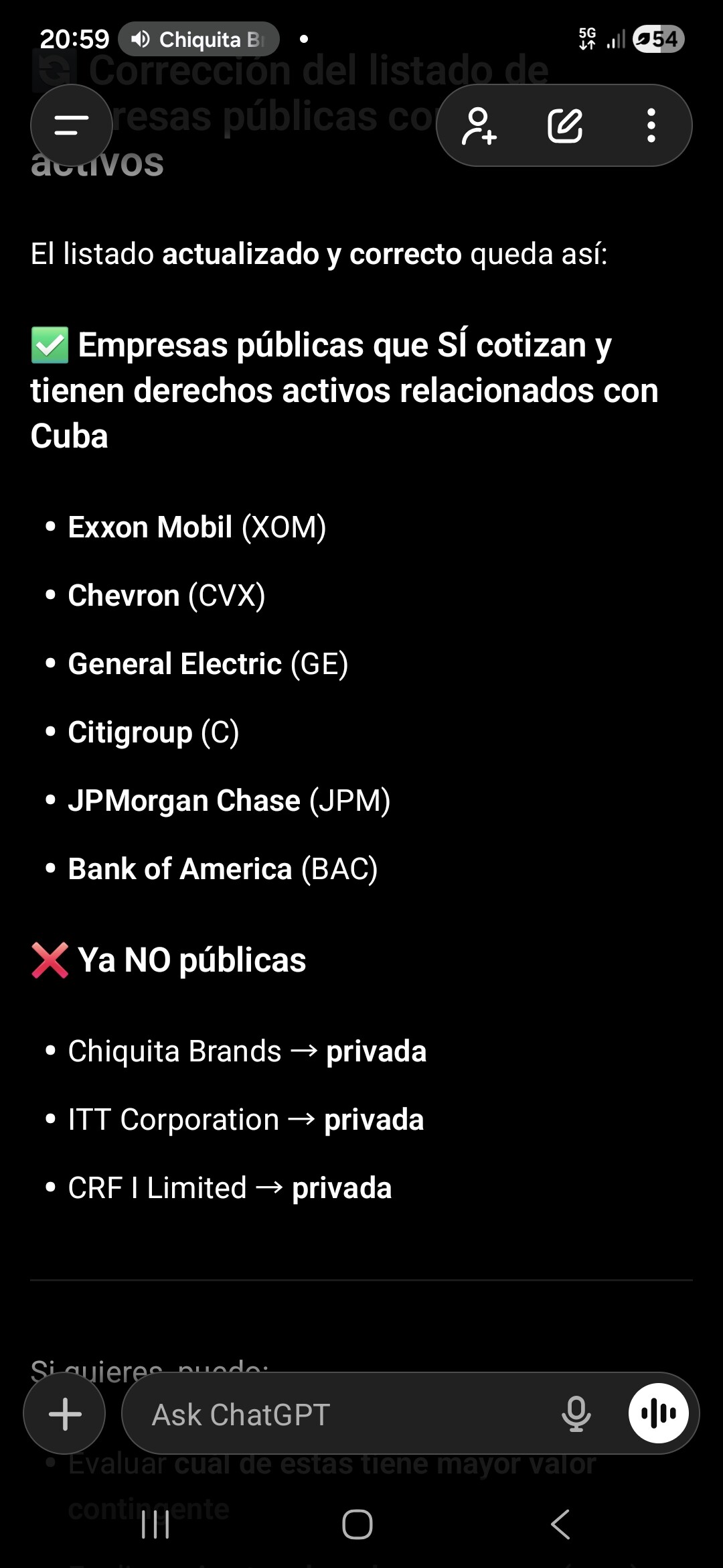 Me imagino, que si cayese el régimen, y hubieran indemnizaciones, estas serian a muy largo plazo. Es más, incluso habría que hacer fuertes inversiones a corto plazo para modernizar la infraestructura.