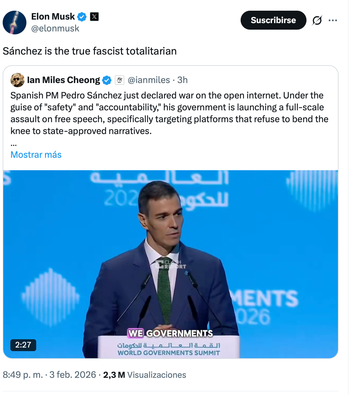 Está en modo campaña, hay que buscar el voto del ofendido por Musk desde el sofá de su casa.