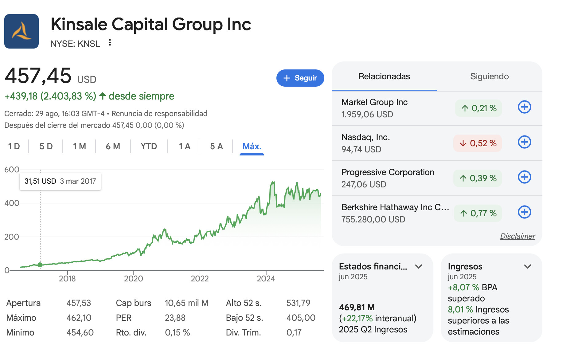 Está empresa hace tiempo que me sale en todas las niusleters habidas y por haber, así que me he decidido a abrir un hilo sobre Kinsale Capital, una compañía del sector asegurador, y de un nicho muy concreto dentro del mismo.