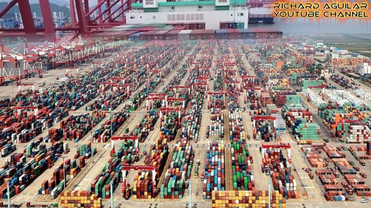 El mayor puerto de tráfico de contenedores de China, automatizado al 100%. Incluye vehículos guiados automáticos: