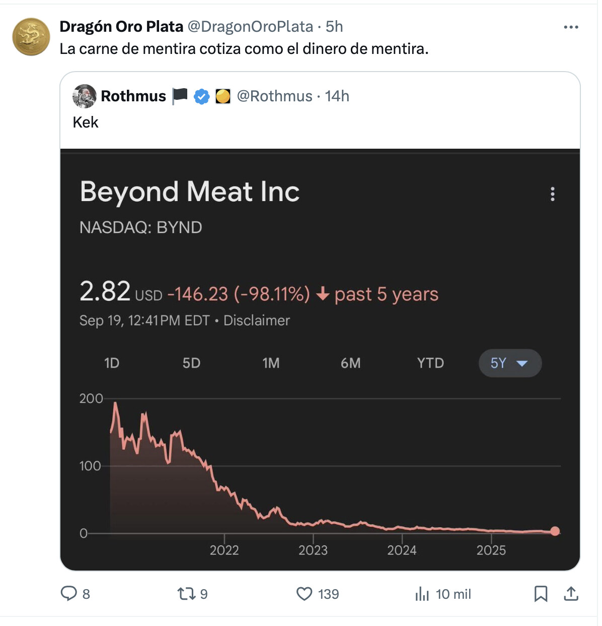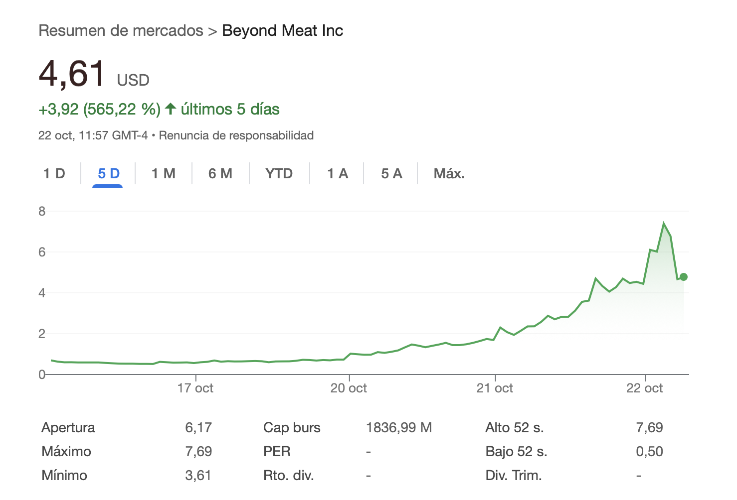 Visto el resultado de Beyond Meat, no veo negocio en la carne sintética.