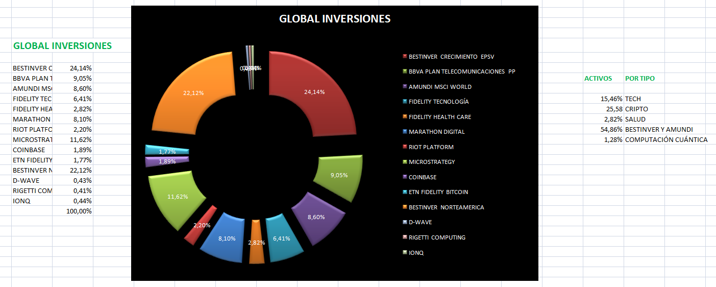 - Incorporo 3 acciones de computación cuántica, inversión muy muy agresiva, de ahí su escaso porcentaje para empezar.
