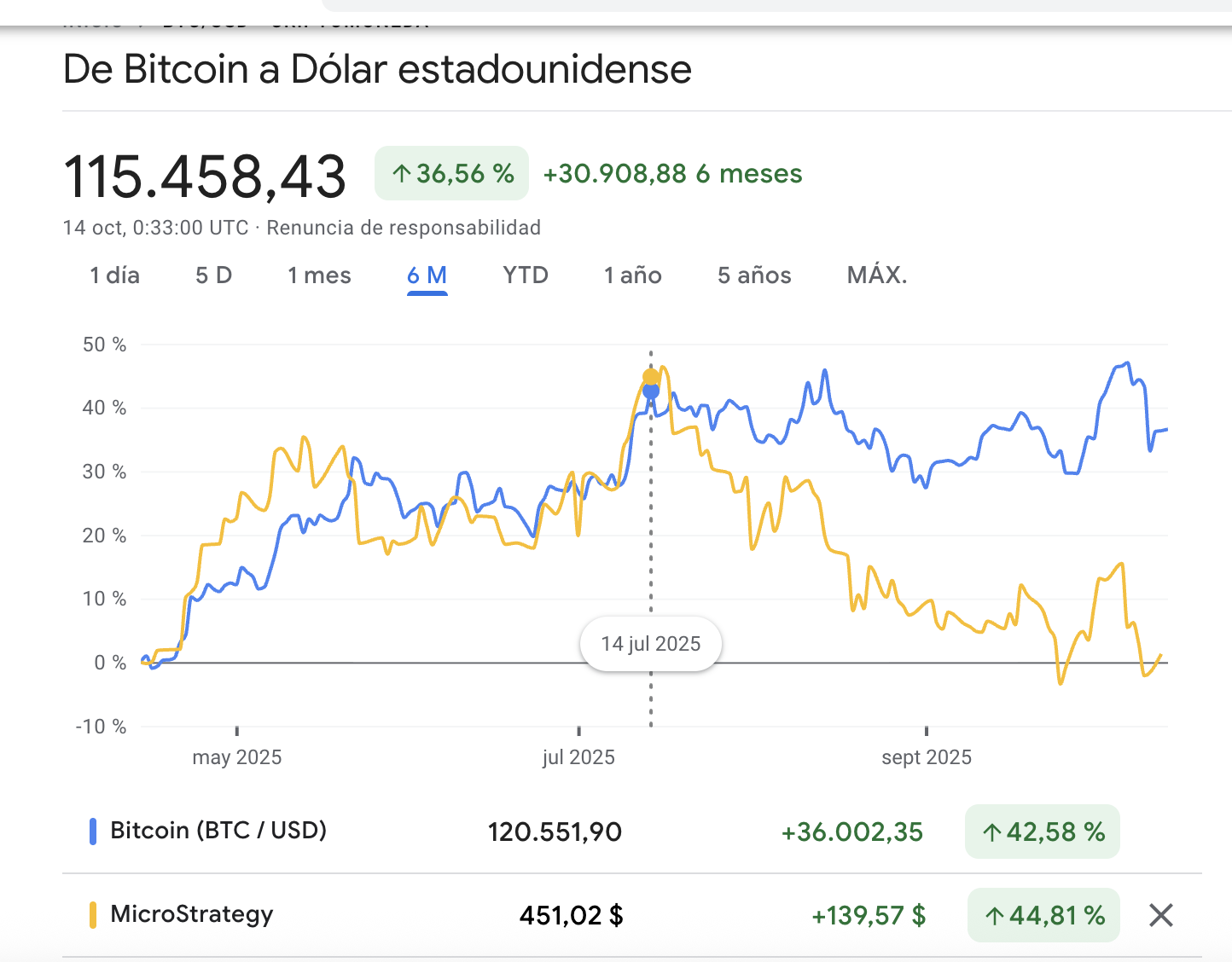 Desde Julio, Saylor no parece desacoplado del BTC?