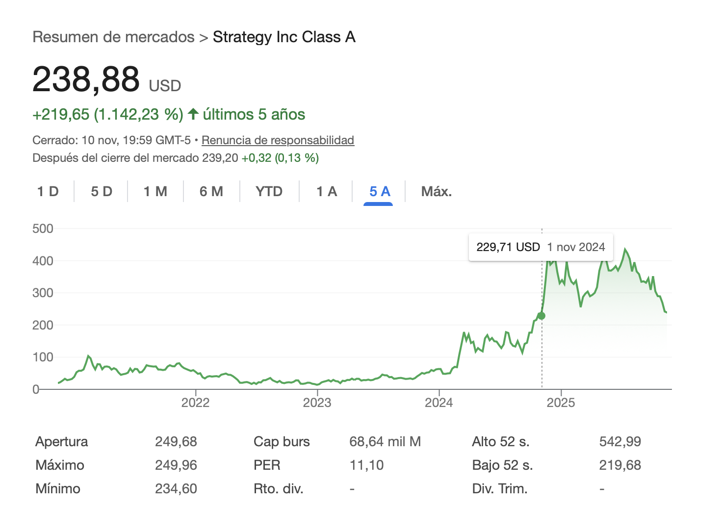 MSTR plano,el monster +2%. Ya llegó a los 300 pavos…