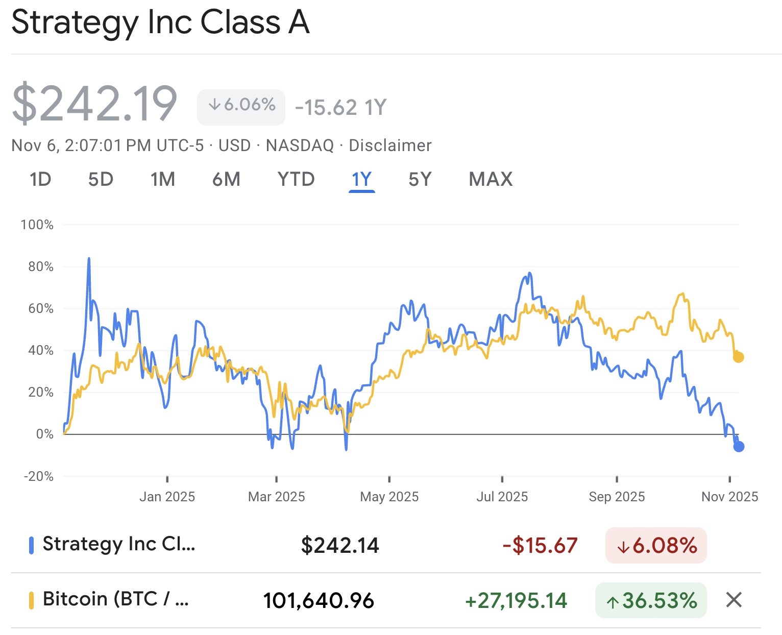 Strategy -15% YTD(Bitcoin +16.5% YTD) ahora no la quiere nadie, es como una lluvia ácida, pero tenemos a nuestro bombero de cabecera.
