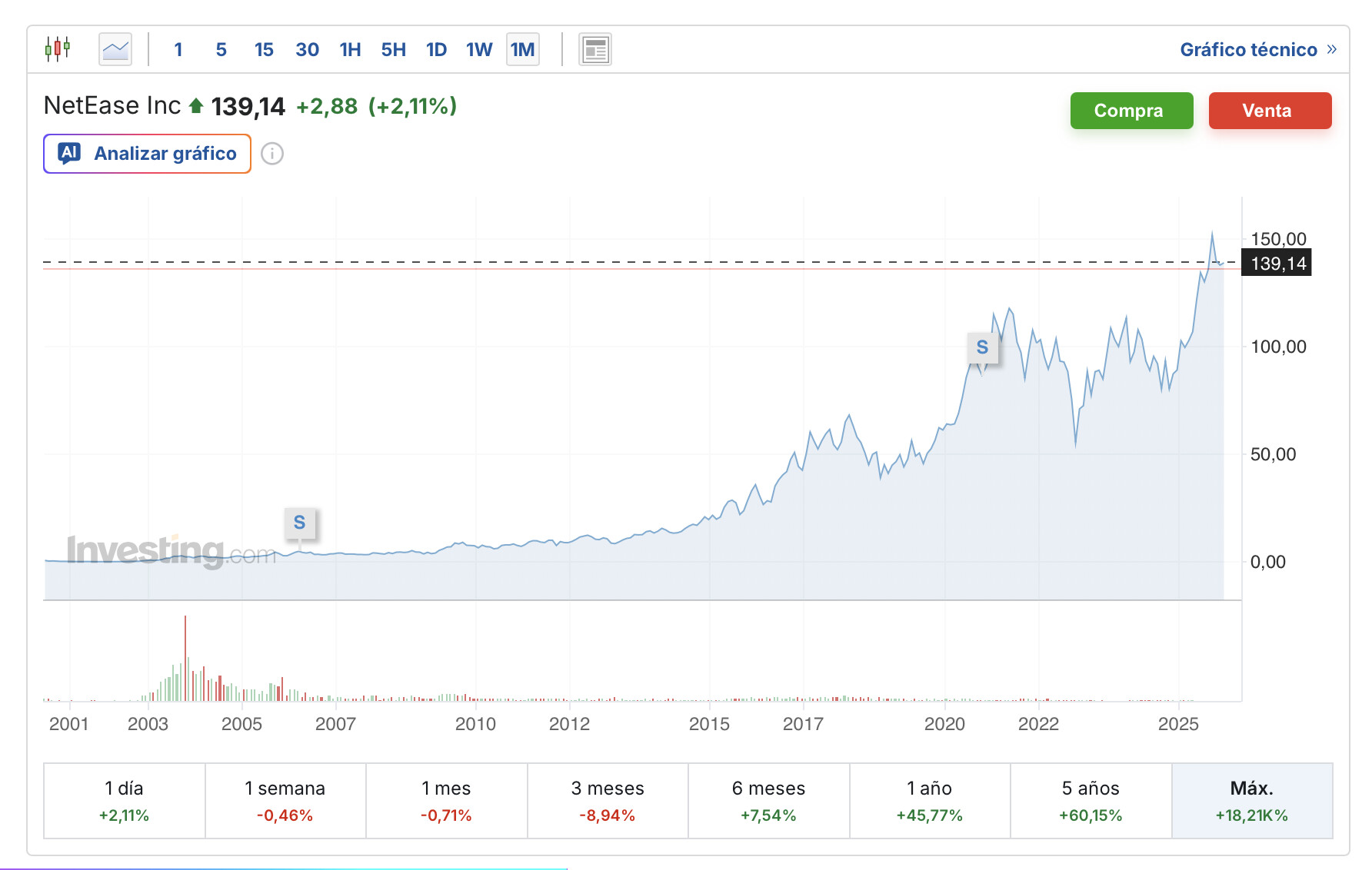 La compañía nació hacia 1997. NetEase ofrece, entre otros, servicios de tienda virtual, servicio de alojamiento de archivos en la nube y es el servicio más usado en China de correo electrónico (163.com, 188.com, 126.com y otros) con más de 940 millones de cuentas en noviembre de 2017.