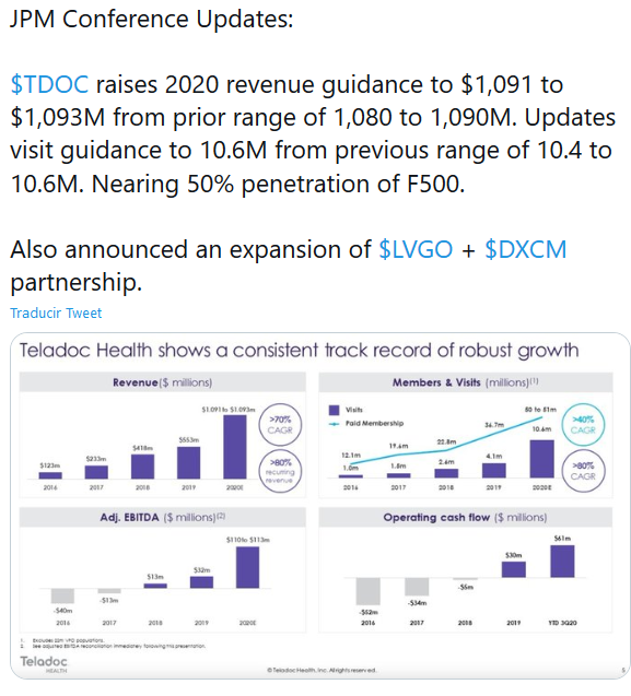Teladoc un valor de moda se presenta actualmente en la 39 conferencia anual de JP Morgan de atención médica: