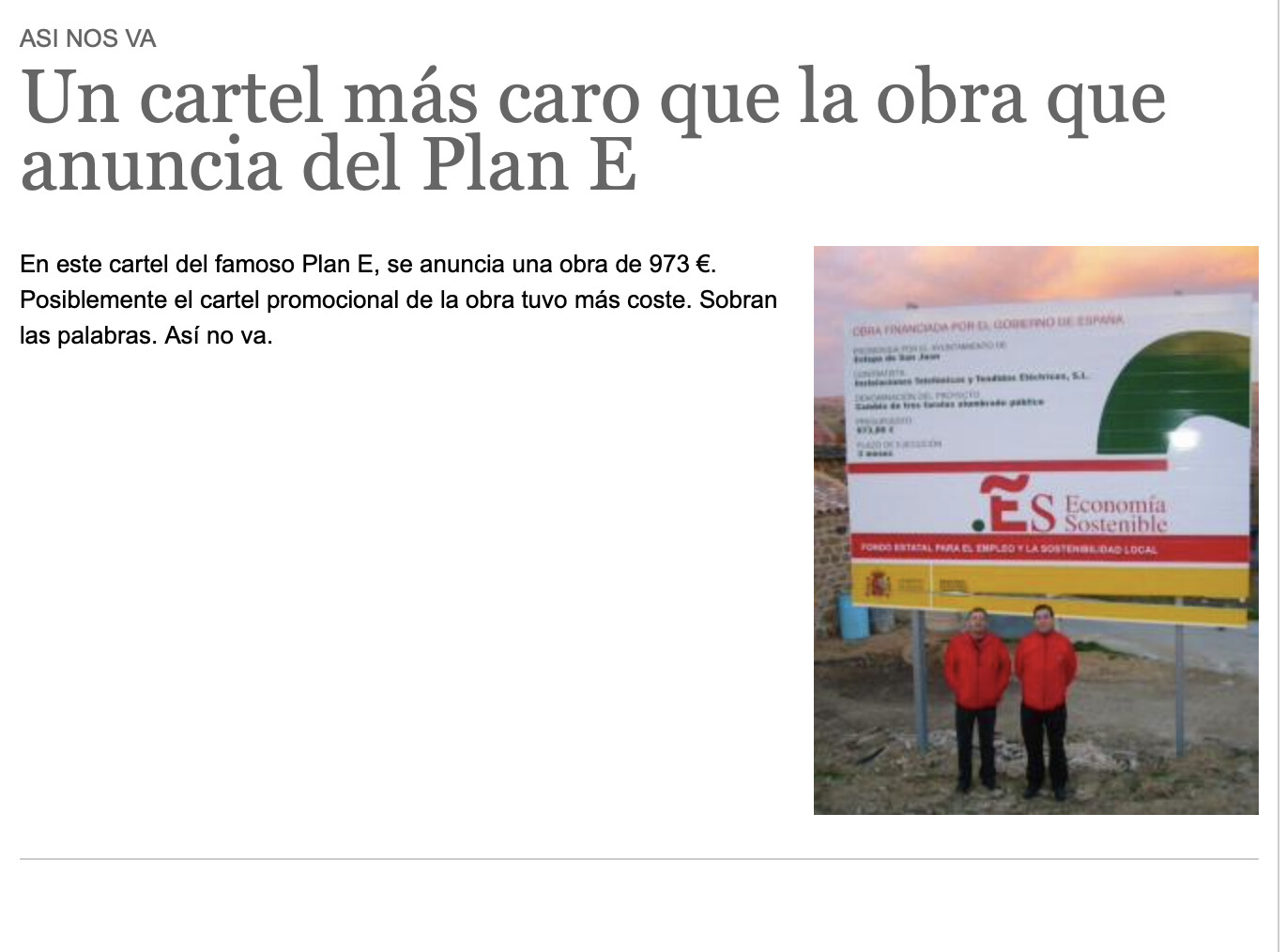 Hombre, ya hicimos un buen ensayo con el Plan Zapatero. Había carteles que valían más que las propias obras.