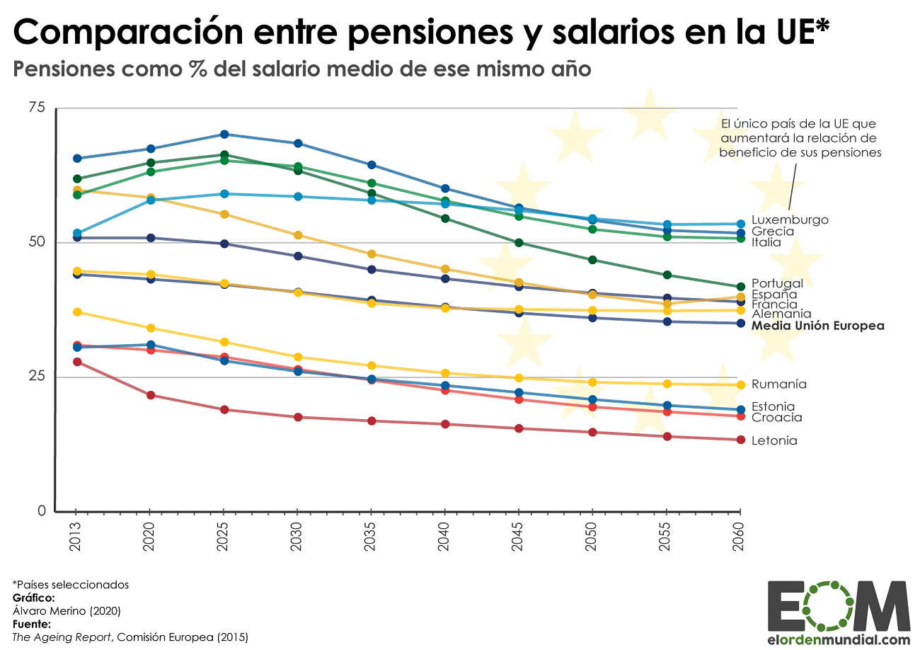 Gráficamente se ve bien, pensión muy parecida al salario medio en la UE.