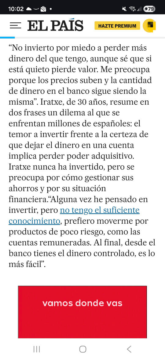 A mi alrededor sólo veo gente preocupada de meter el dinero en cosas seguras.