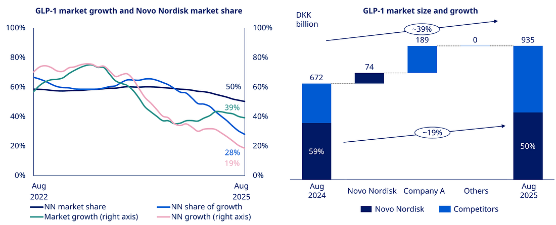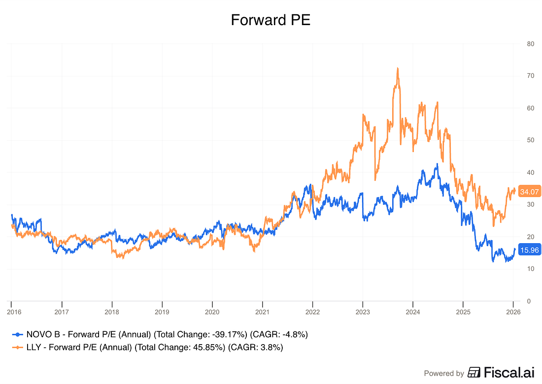 Si no pierde más cuota de mercado respecto a Lilly y mantiene esos márgenes operativos, debería valer el doble, teniendo sólo en cuenta los múltiplos que cotiza ahora mismo. Luego hay que tener en cuenta los vientos de cola que tiene, cada vez más población obesa y más diabéticos.