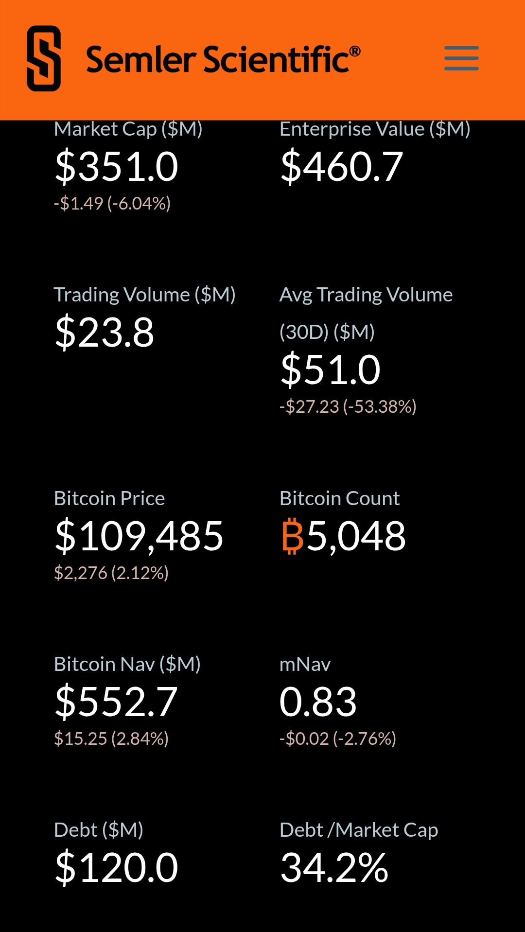 Aquí tienes algunos datos recientes sobre Semler Scientific, Inc. (ticker SMLR) en cuanto a sus activos y a si tiene criptomonedas (Bitcoin) en su balance: