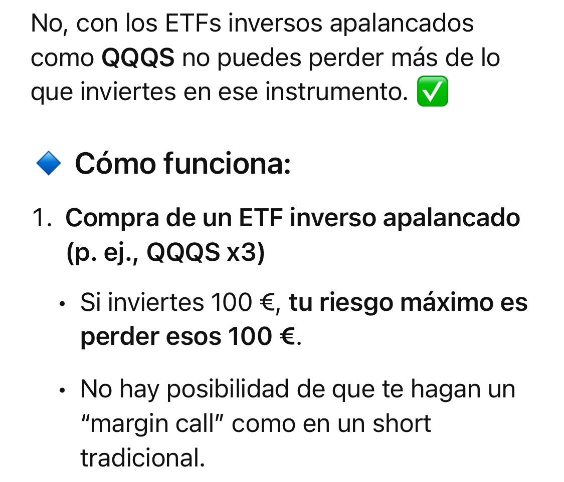 • El QQQ3 largo sigue expuesto a la tendencia alcista (que históricamente suele dominar en el Nasdaq).